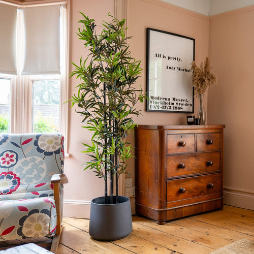 Finishing touches like pots and planters will make a huge difference to your artificial plants, trees, and flowers. A pot will help the plant blend (or stand out) into it's new home and it'll improve stability too.