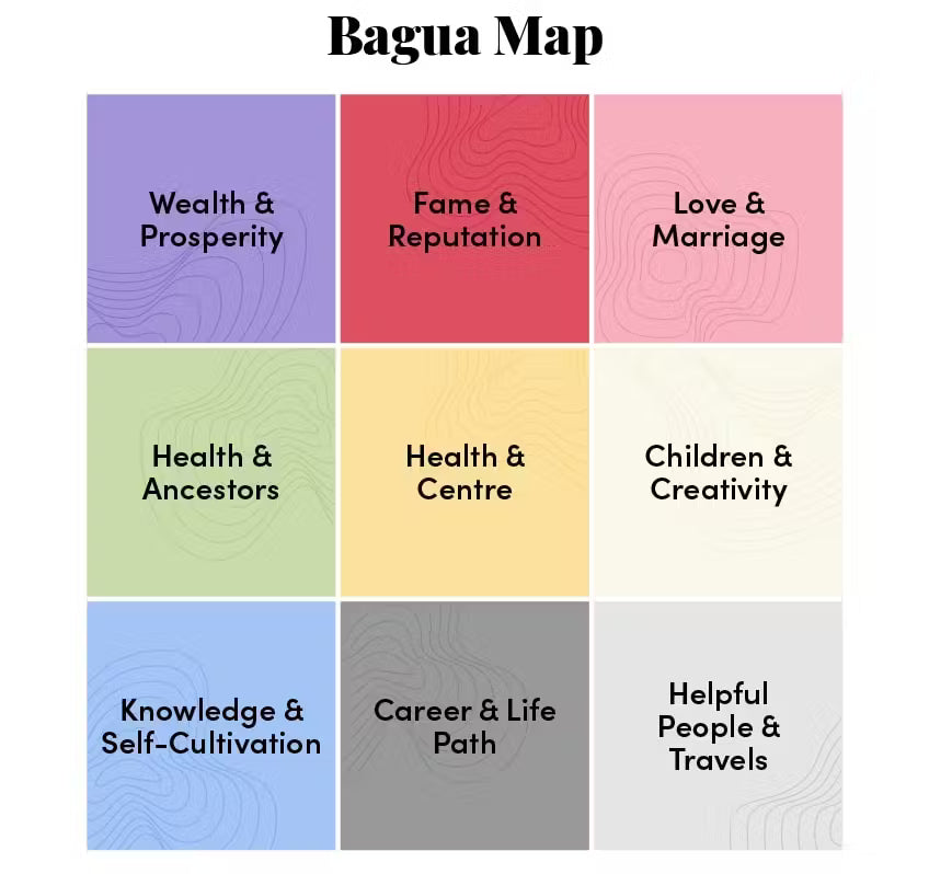 The bagua is an energy map that can be placed over the floorplan of your house, or even a single room within, to help define the energy movement in your home.