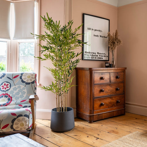 Finishing touches like pots and planters will make a huge difference to your artificial plants, trees, and flowers. A pot will help the plant blend (or stand out) into it's new home and it'll improve stability too.