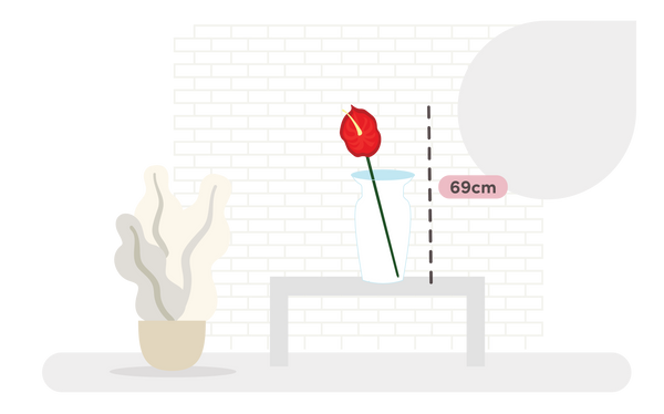 Our artificial anthurium stem is approx 69cm tall. Using some wire cutters, you can easily trim down the height of this stem to suit any vase.