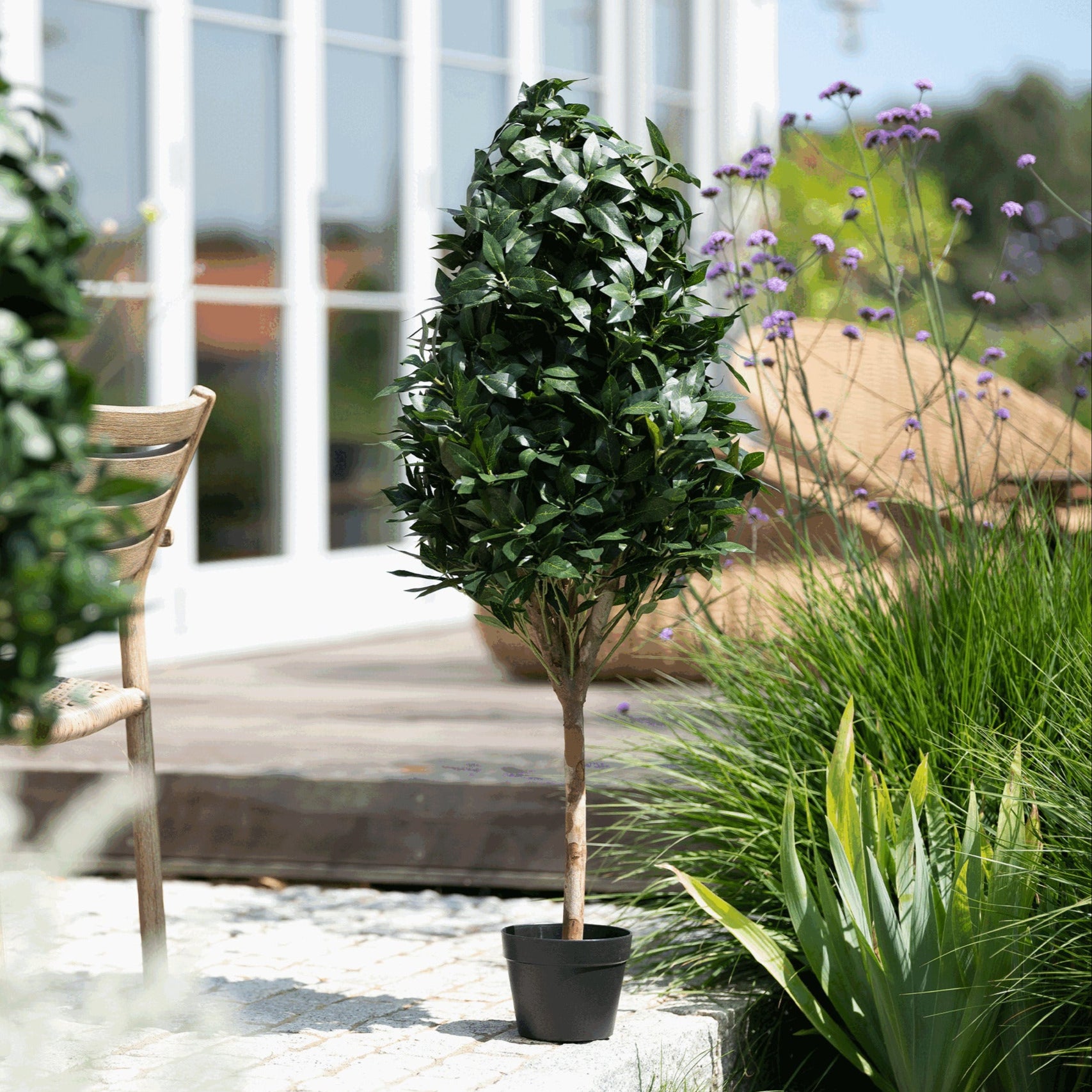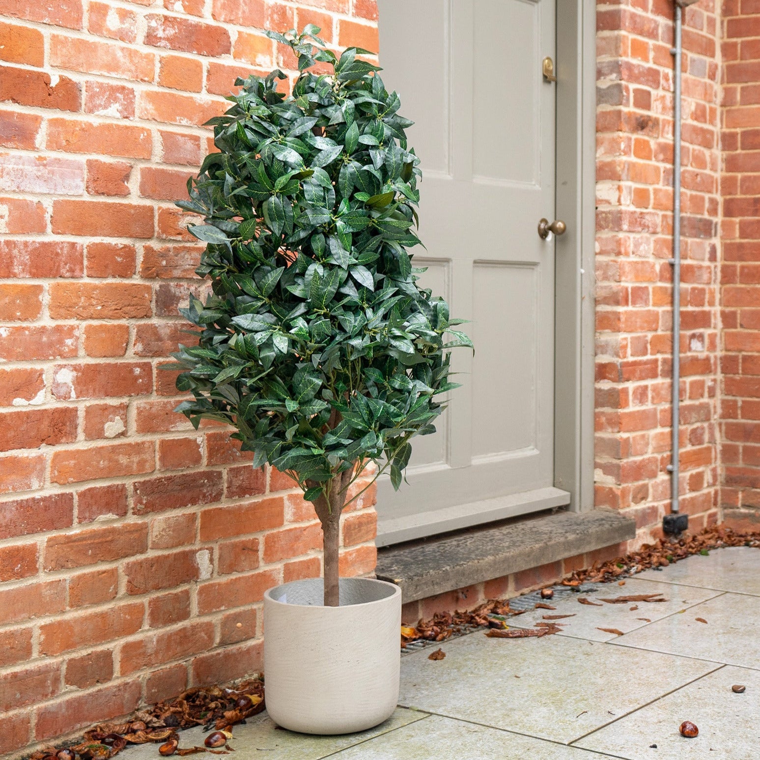 The sophisticated sibling to our popular bay laurel tree, our gorgeous artificial bay cone offers dense glossy greenery and a real wood stem to spruce up your garden in an instant. Lush UV stable foliage that never needs pruning, this elegant outdoor artificial topiary tree with plenty of style.