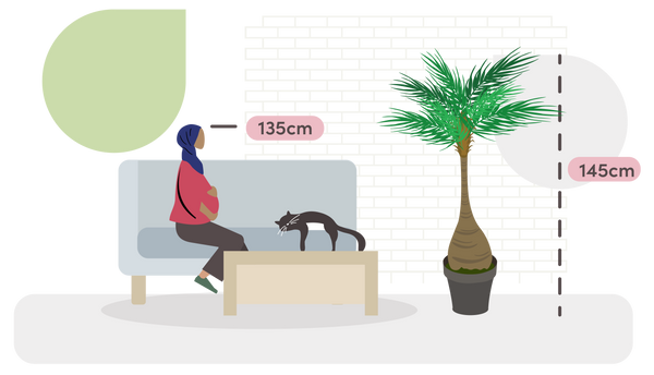 Once it’s sitting pretty in your home all you’ll need to do is give it an occasional wipe with a damp cloth. Start at the top and work your way around and down the palm to remove any dust.