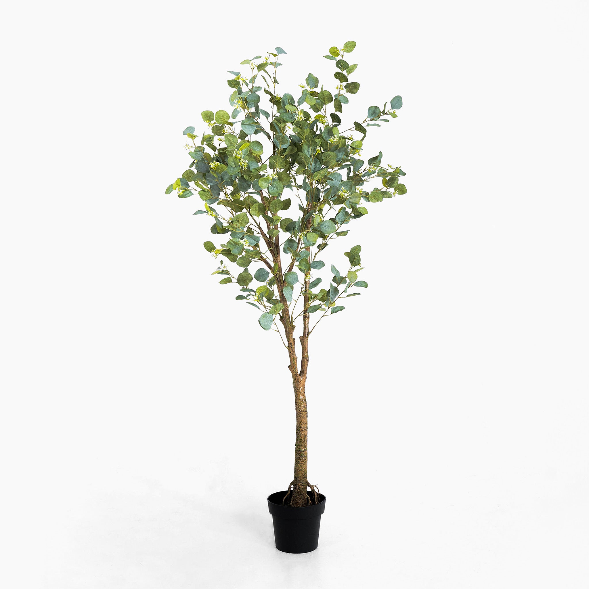 Add a botanical feel into your home with the fake eucalyptus tree. The tree has an array of silvery green and soft green eucalyptus leaves, offset by dainty white flowers, and a ultra-realistic moulded trunk to make it appear as though it is real.