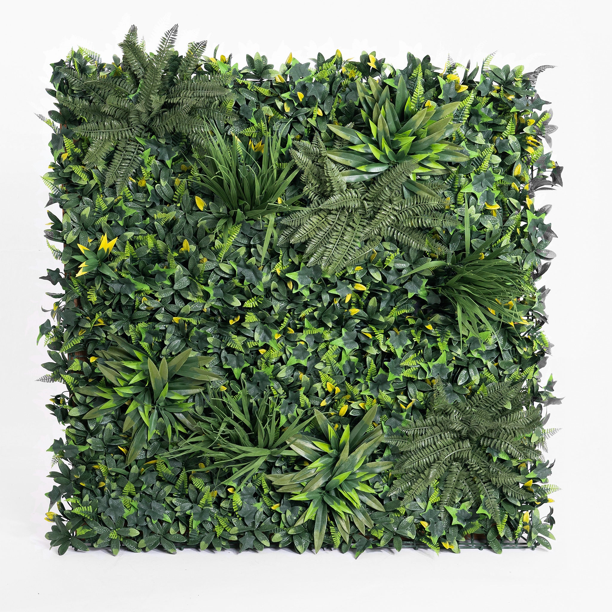 Our artificial forest greens living wall includes a dense blend of grasses and various woodland greenery, tinged with a hint of yellow to brighten your space.