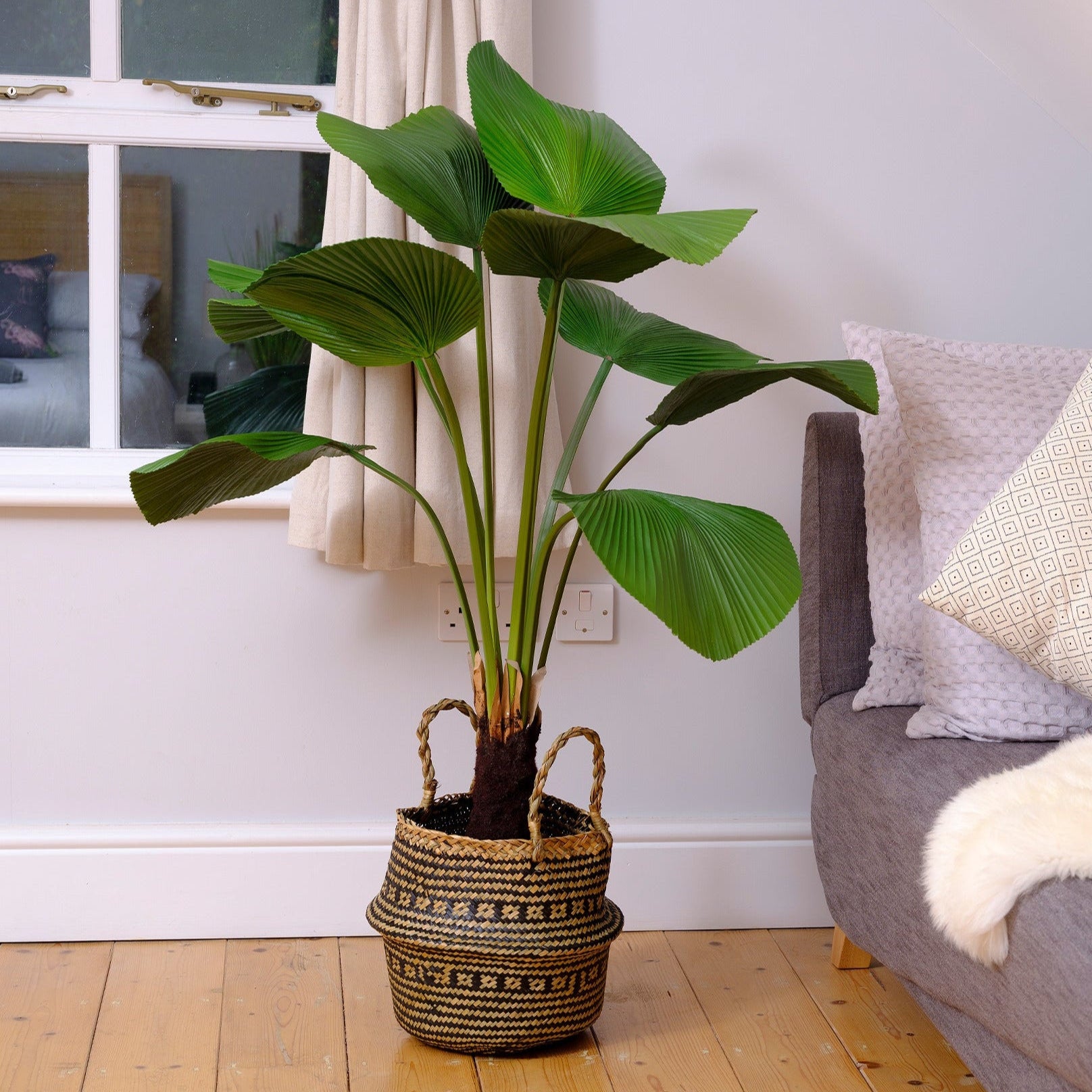 Licuala palm is known to be slow growing, and surprisingly it does like shade. By going faux you get a full-sized one out of the can be placed wherever you want to make a statement. Even more importantly... it will look its best from the very first day! ??