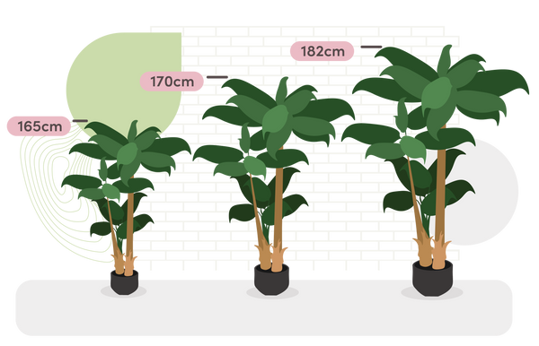 Our artificial musa banana tree comes in a variety of sizes, with heights ranging from 165cm to 182cm tall!