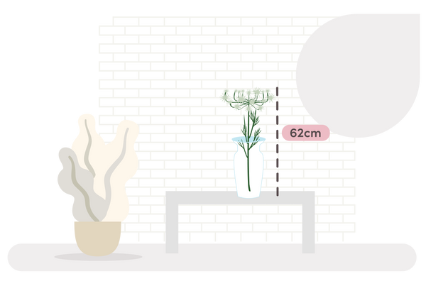 Our artificial Queen Anne's lace stem is approx 62cm tall. Using some wire cutters, you can easily trim down the height of this stem to suit any vase.