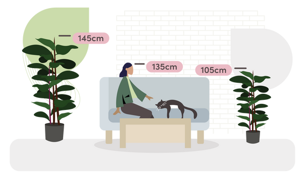 The artificial rubber tree is available in two sizes, either 105cm or 145cm. All measurements are taken from the ground to the top of the plant. You can raise the height by popping it in a taller pre-filled pot.