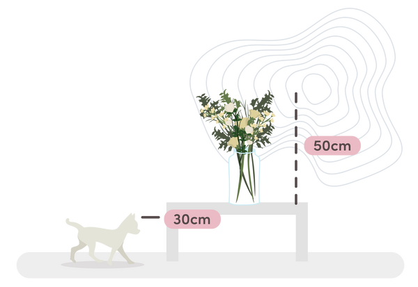 2. Take the vase measurement and measure from the bottom of the flowers and foliage area towards the bottom of the stem.