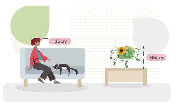 2. Take the vase measurement and measure from the bottom of the flowers and foliage area towards the bottom of the stem.