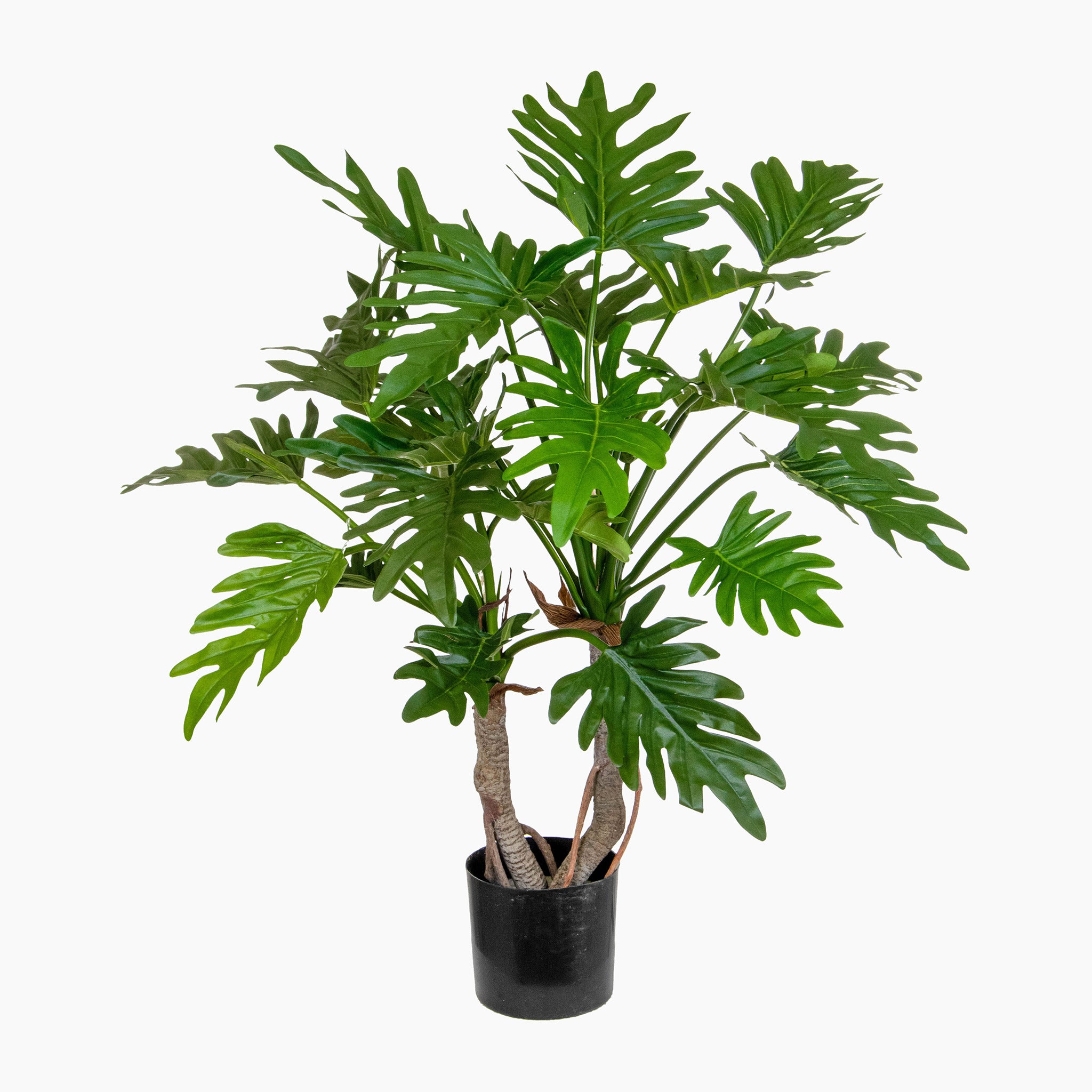 Our artificial philodendron tree has a retro fresh look, featuring large, squiggle-shaped leaves and a real wood stem, making it easily mistakable for the real thing!