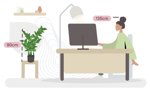Our artificial ZZ plant stands at 90cm tall and 45cm wide, making it the ideal faux for small narrow spaces around your home or office.