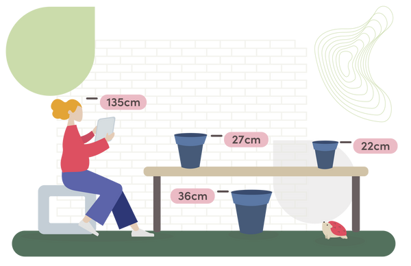 Selecting a pot towards the higher end of this range will really improve the plants stability. A top tip if you have small people or pets running around.