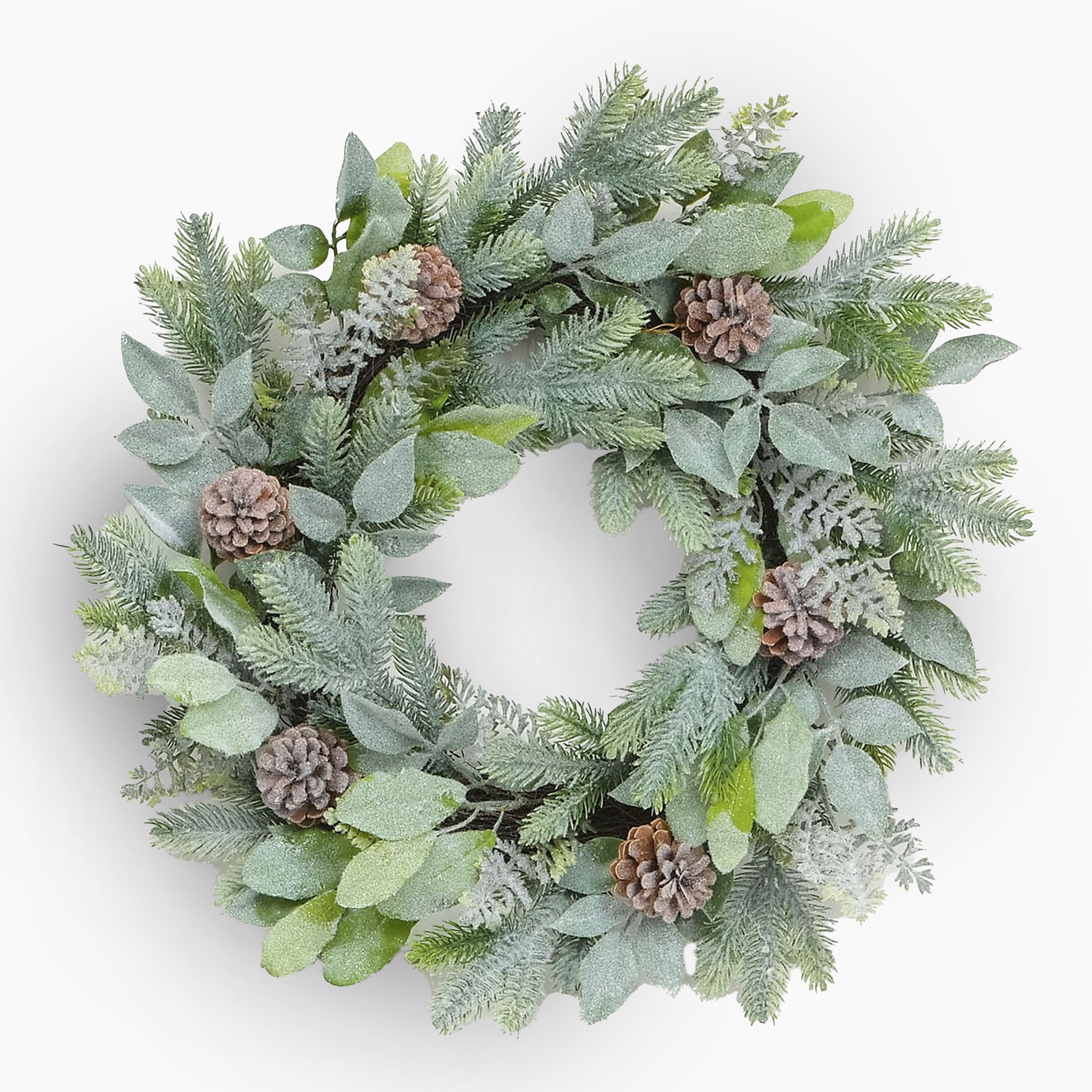 Made with lifelike faux-liage, each leaf and pinecone is carefully detailed to mimic freshly gathered winter greenery. The frosted finish gives it that just-stepped-outside-into-the-snow look, and its durable design makes it great for both indoor and sheltered outdoor use.