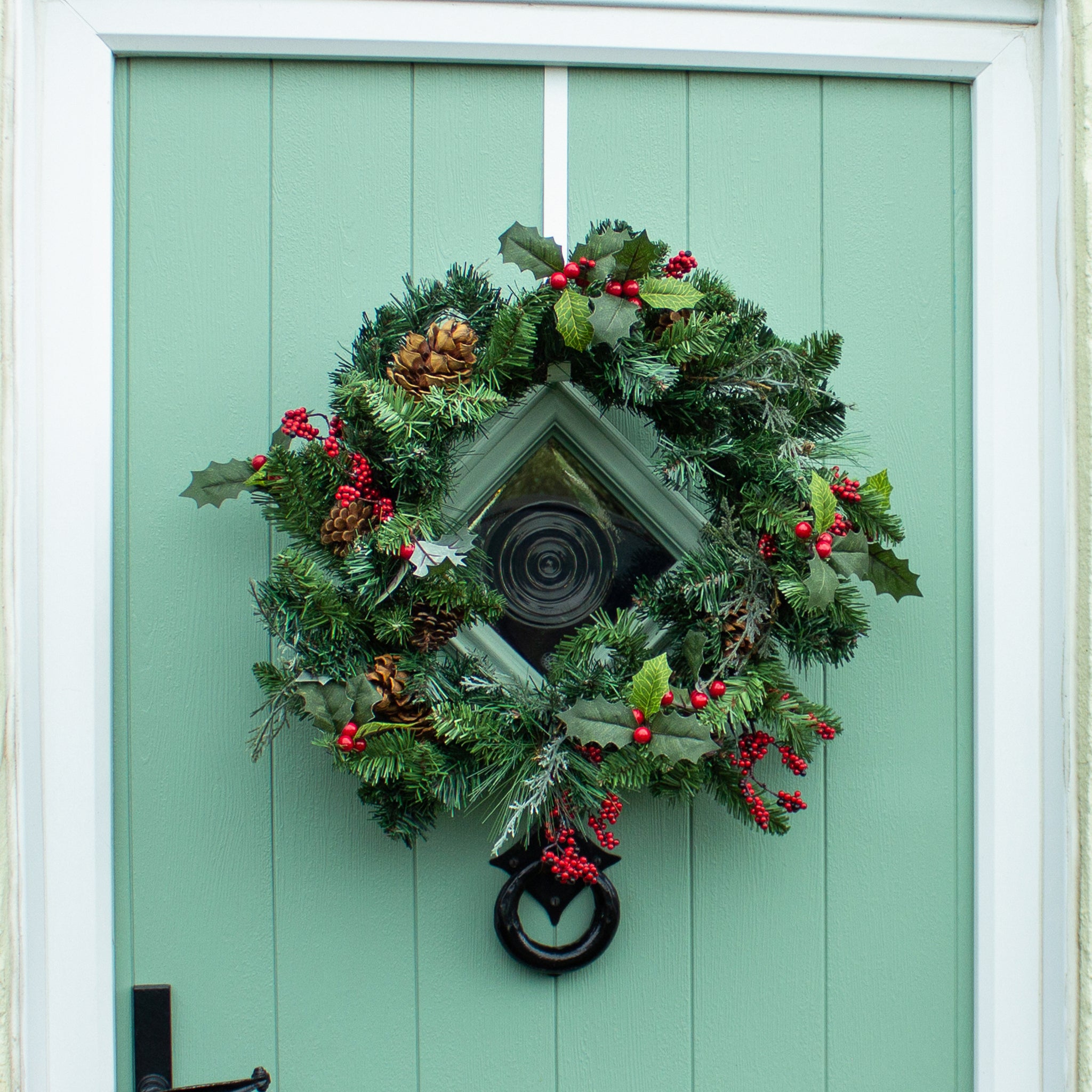 Add winter berry wreath to your entrance for an instant lift!